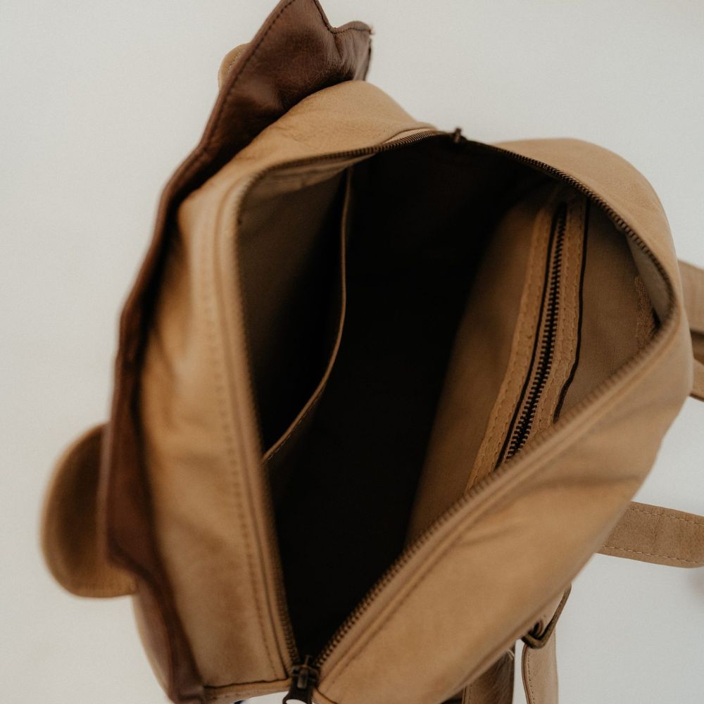 This brave little backpack is ready to roar through every adventure — from park days to preschool. Handcrafted from soft, durable leather with a sturdy ripstop lining, Leo keeps treasures safe with one open pocket and one zip pocket inside.