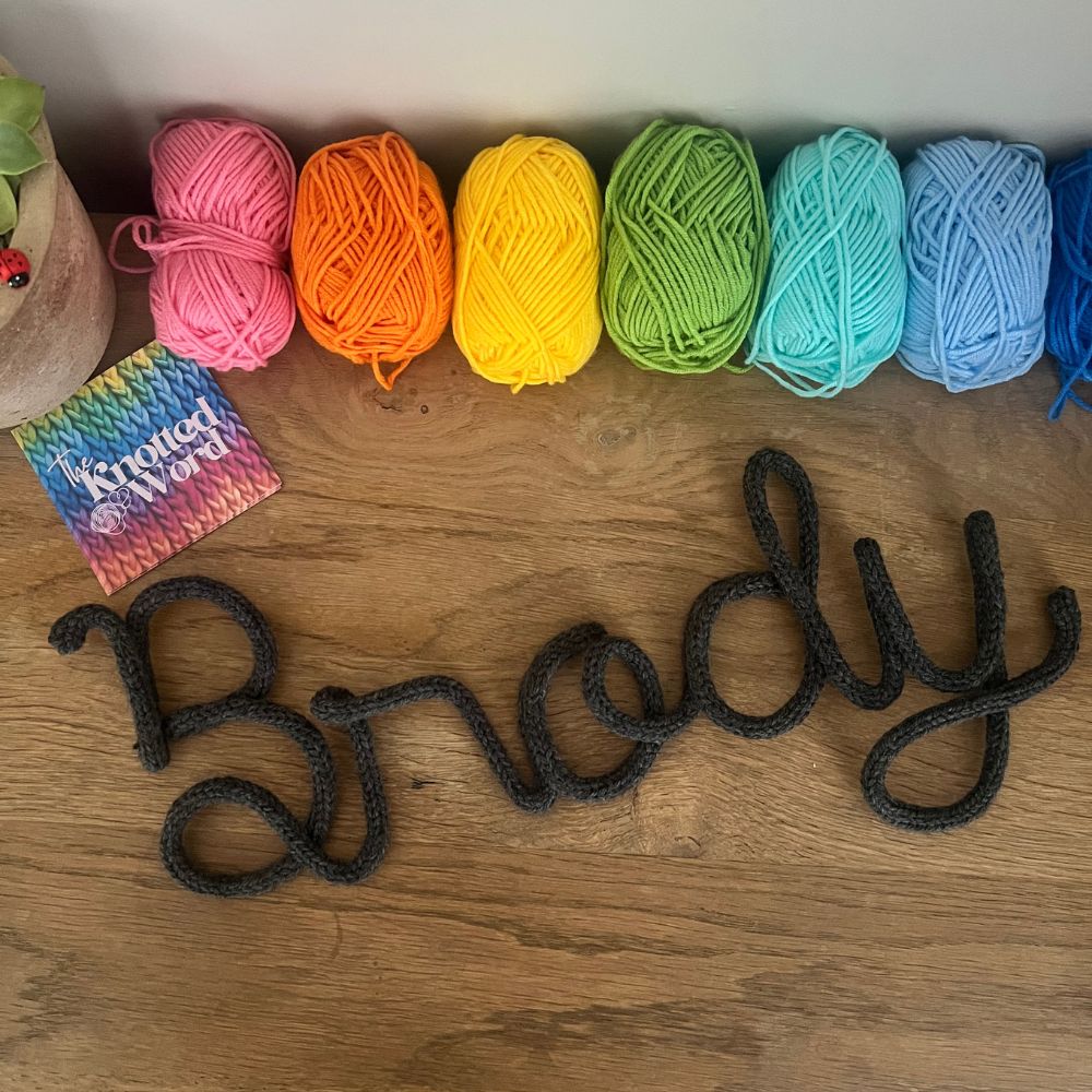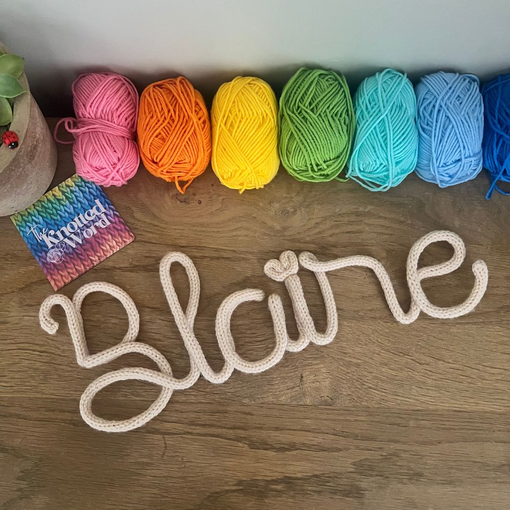 The Knotted Word creates handmade knitted names and words — the perfect personalised touch for nurseries, kids’ rooms and special gifts. Height: Width: Length: Size:5Colour: Brand: The Knotted WordMaterial: Yarn