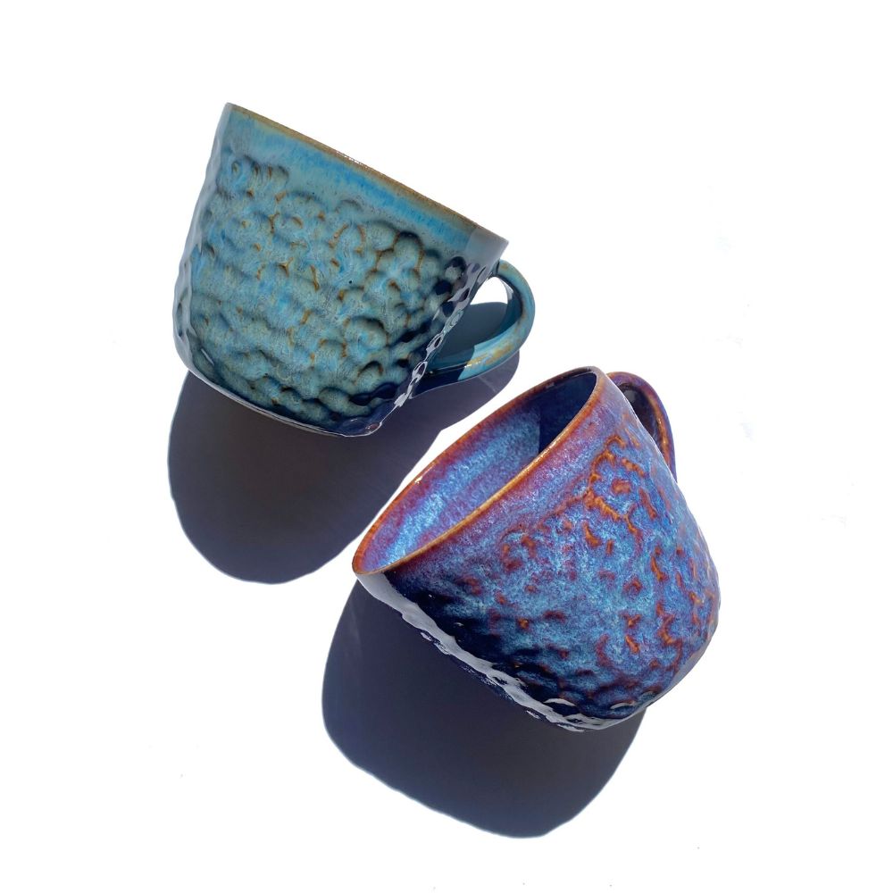 Handcrafted Mugs. Featuring royal blue and ice blue colour design. Ideal for a nice coffee.